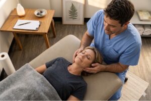 Après une chirurgie à la fin de décembre 2025, une patiente a d’abord vécu ce que beaucoup décrivent : une phase “lune de miel”. Elle se sentait étonnamment bien, plus alignée. Puis, quelques jours plus tard, les choses ont changé : des migraines ont commencé progressivement, souvent ressenties dans le visage et autour des orbites. Deux semaines après, une douleur au milieu du dos est apparue, puis s’est déplacée vers le bas du dos à gauche / région sacro-iliaque (SI). À cela se sont ajoutés une nuque “bruyante” (craquements) et une tension profonde persistante à la base du crâne — un tableau typique des cas complexes.